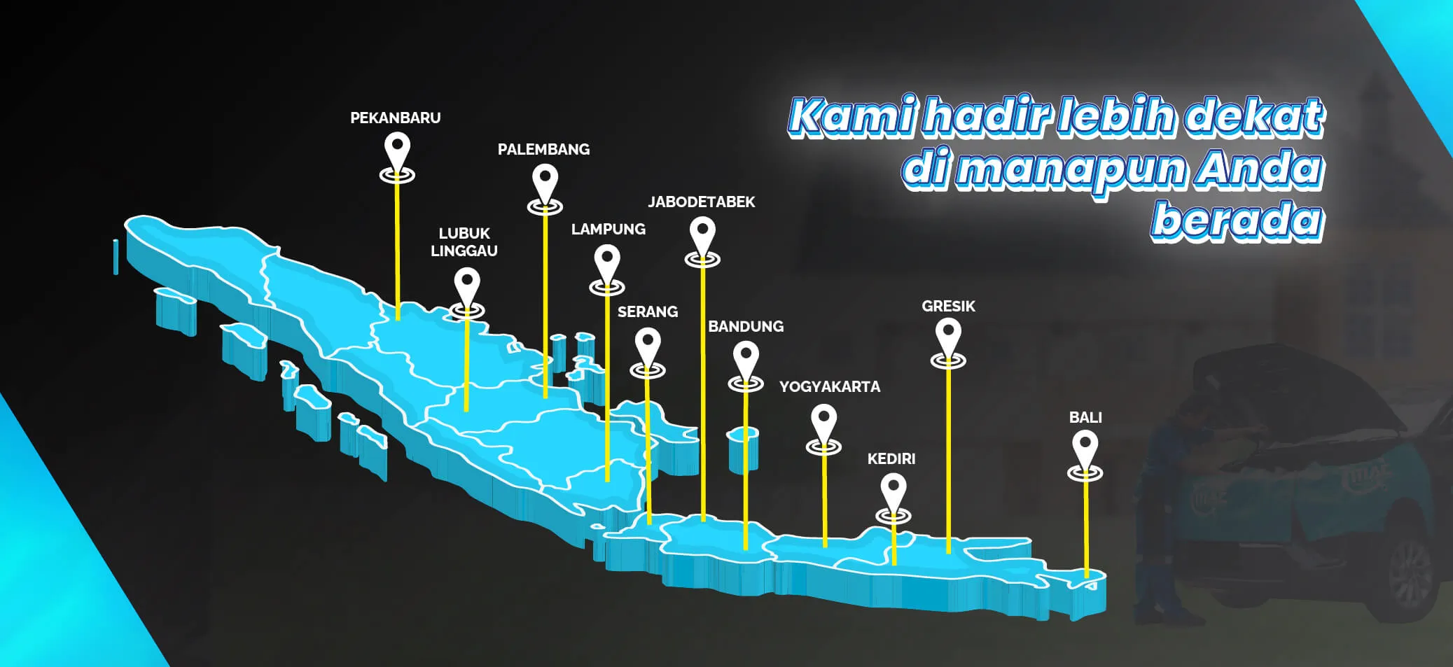 Dengan tim profesional dan peralatan modern, kami memberikan solusi terbaik untuk kendaraan anda. Dimanapun, Kapanpun, Kami siap melayani anda !!