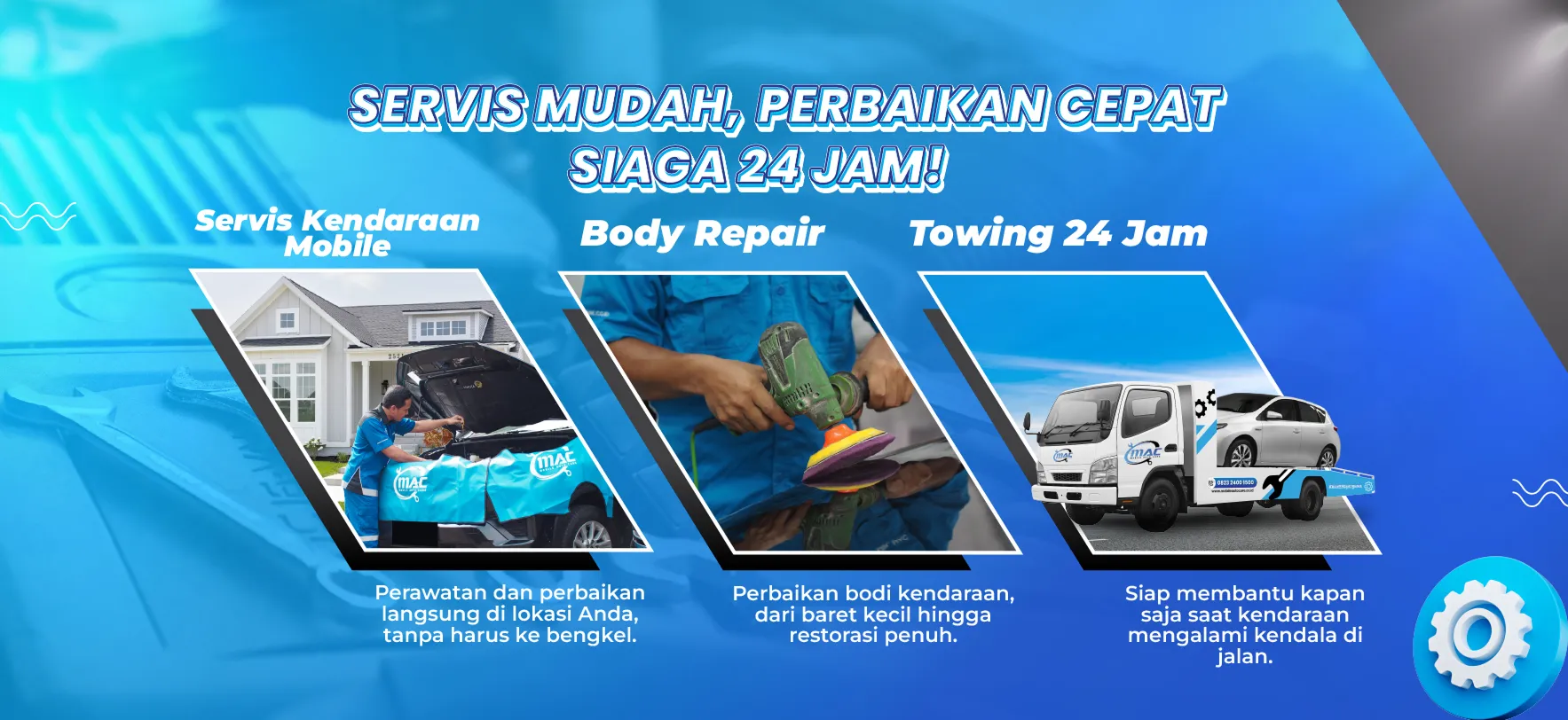 Menyediakan layanan lengkap dalam satu tempat: servis kendaraan mobile, body repair, dan towing 24 jam, sehingga pelanggan tidak perlu mencari banyak penyedia jasa.